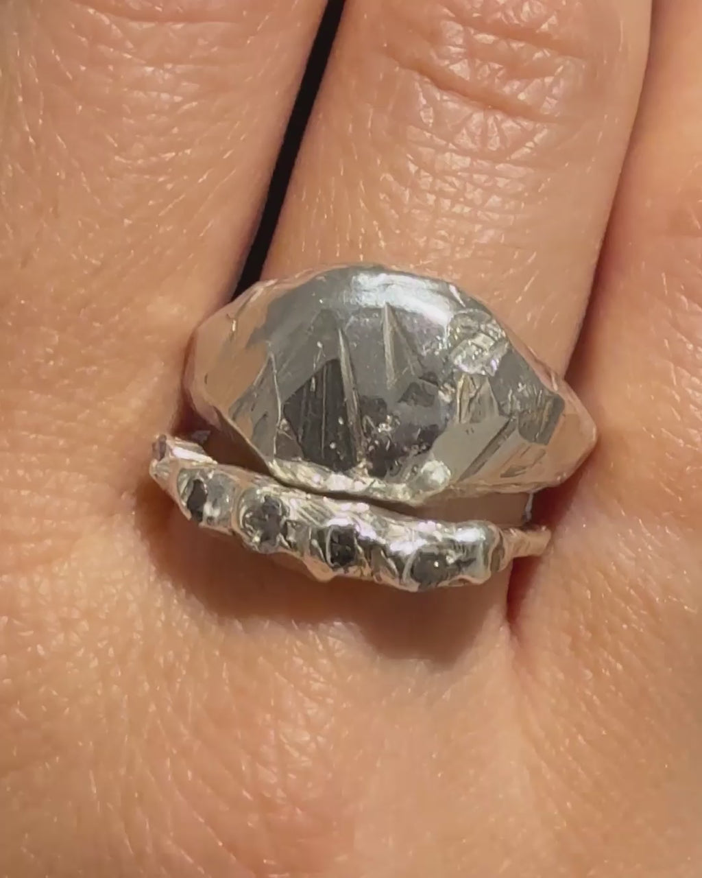Set de dos anillos en plata: una mini churumbela y un sello orgánico.